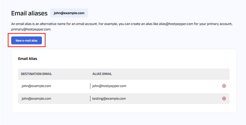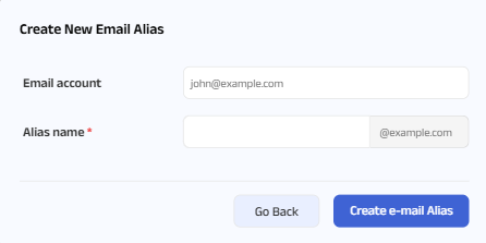 Click the “New E-mail Alias” button in the top-right corner. A pop-up will appear, prompting you to enter the alias name.