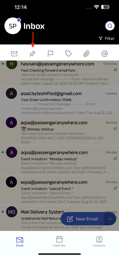 Click on the filter icon and select “Pinned” option to confirm. The email will now be highlighted as pinned, making it easier to spot when scanning your inbox.