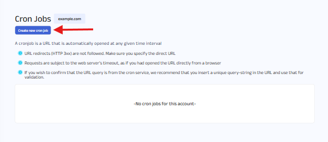 Fill in the information based on your needs, then click “Create New Cron Job” in the bottom-right corner of the popup.