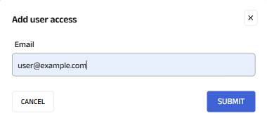 In the “Users” section, click on the “Add User Access” button. A popup will appear prompting you to enter the email address of the person you wish to grant access to.