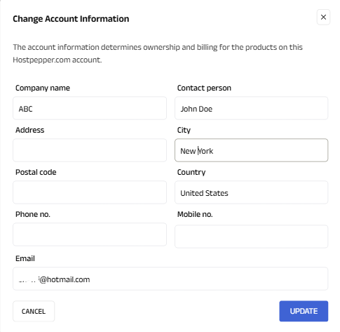 Make the necessary changes directly within the popup, then click the “Update” button in the bottom-right corner. Your account details will be saved successfully.