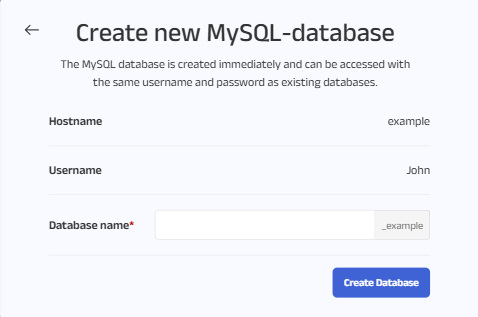 Enter the desired name, then click the “Create Database” button in the bottom-right corner.