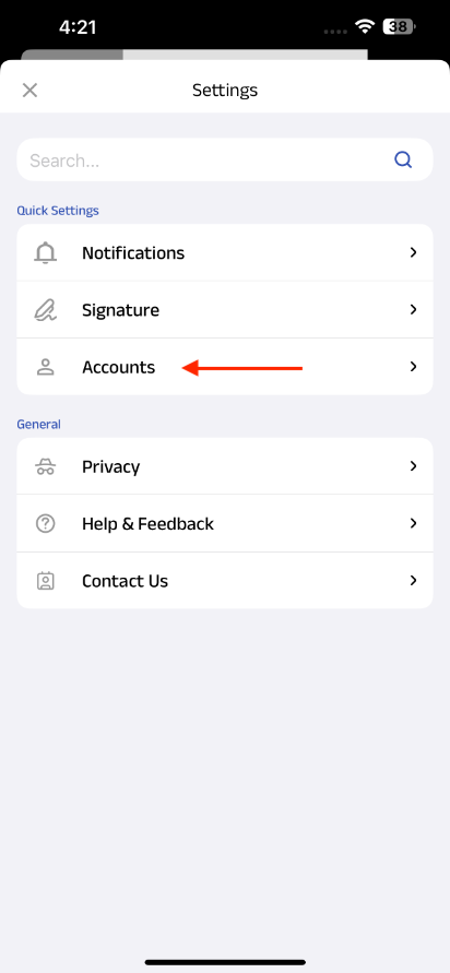 This will open the settings menu where you can add an account, create your signature, view privacy policy, view FAQ, and contact HostPepper team.