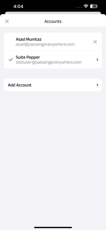 To add an account click on “Accounts” menu in your settings. Once opened, you can see this screen. Click on Add Account to add another account. Enter your email and password for the account you want to log into.