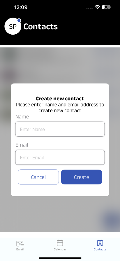 Tap the contact tab in the bottom navigation bar and click on plus on plus icon. an pop up will appear.