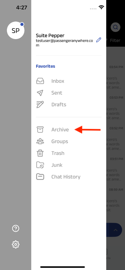 Emails that you have archived will be available in the side menu. Swipe right to access the menu. Click on “Archive” to view your archives.
